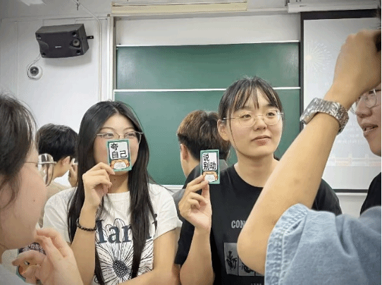 “害你在心口难开”纸牌游戏以轻松诙谐的形式成为现场焦点。参与同学每人头顶一张写有“禁令词语”的卡片,需在交流中避免说出或做出卡片上的内容,同时引导他人触发“禁令”。过程中,同学们谨慎措辞、机智应对,时而因“意外踩坑”引发笑声,时而因“巧妙避坑”获得喝彩,“神回复”“神坑队友”等趣味场面频出。该活动不仅帮助新生缓解了入学初期的学业压力与适应焦虑,更在互动中增进了同学情谊,展现出医学院学子活泼开朗、积极向上的青春风采。