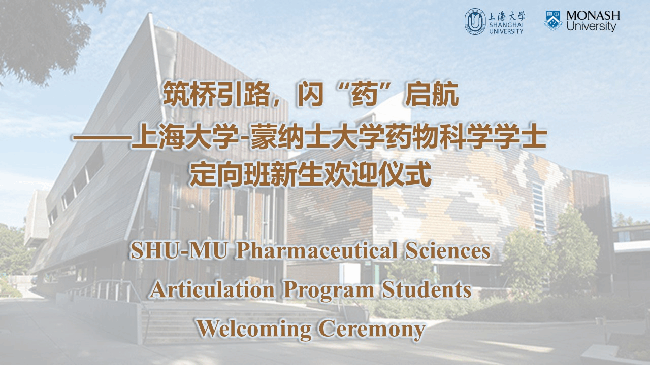 筑桥引路,闪“药”启航。本次上海大学-蒙纳士大学药物科学学士定向班新生欢迎仪式的圆满举行,为新生开启国际化求学之旅奠定了坚实基础,更传递了学院的深切关怀与殷切期许。愿新生们牢记嘱托,以青春之力逐梦前行,在上海大学与蒙纳士大学的求学征程中开拓视野、锤炼本领,成长为具备国际竞争力的优秀药学人才,在医药健康领域书写无愧于时代的青春篇章。