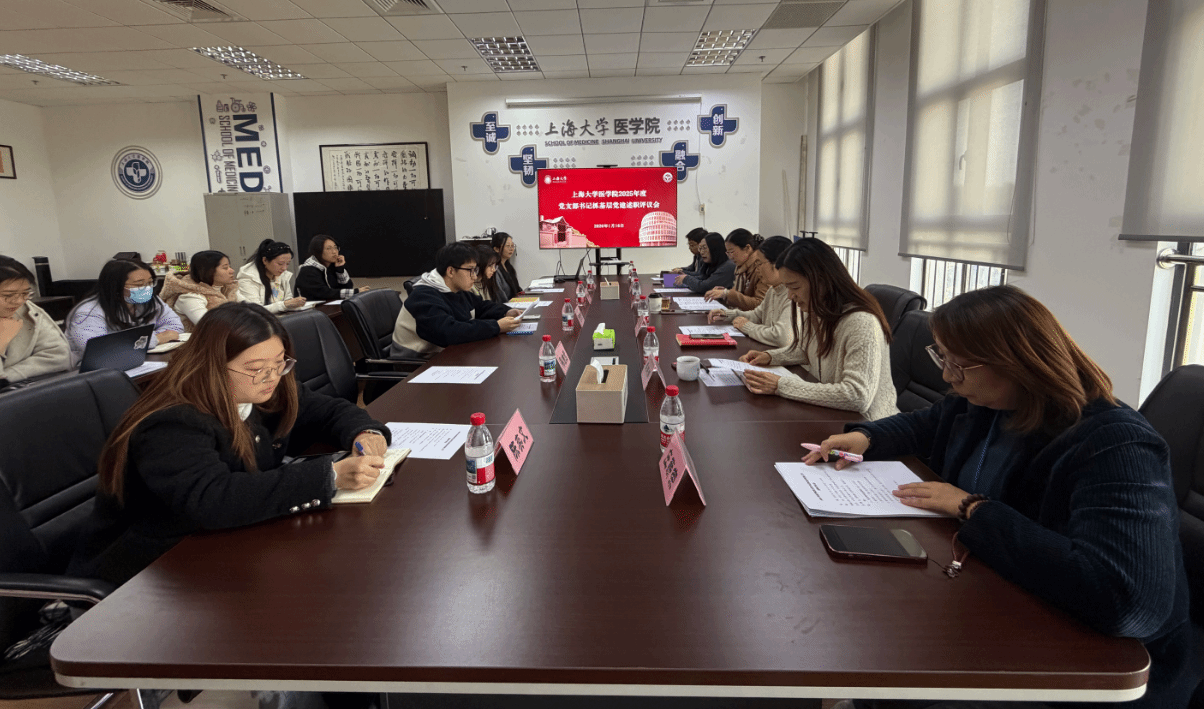 为扎实推进基层党支部标准化、规范化建设,不断提升党建工作质量,2026年1月16日下午,医学院党委在东区3号楼317会议室组织召开2025年度党支部书记抓基层党建工作述职评议会。上海大学党委组织员黄谷,医学院党委书记李娟,党委委员、副院长姚萱,党委副书记、副院长盛晓娜,党委委员、组织员庄薪荣,党委委员、教师第二党支部书记王庭芳,研究生党建中心主任李恒康,以及各党支部书记、支委成员等出席会议。会议由医学院党委副书记、副院长盛晓娜主持。