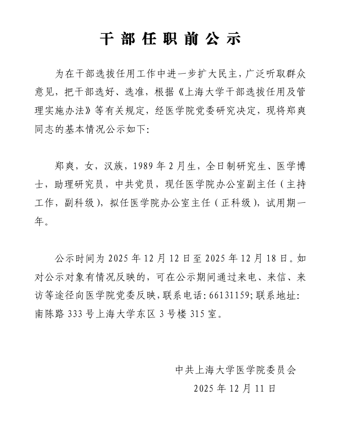 关于开展上海大学医学院2026年硕士研究生硕博连读申请推荐与资格认定工作的通知