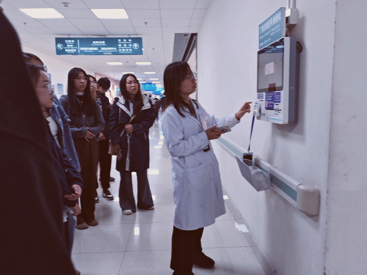 理论学习环节结束后,上海大学医学院药学研究生第二党支部的党员们在大场医院第一党支部党员的陪同引导下深入医院各部门进行实地参观,近距离了解医院科室分布、优势特色专科情况以及药房工作流程等,并在专业人员的指导下参与了现场导医志愿服务,协助门诊维持就诊秩序,帮助就医患者解决“就医流程不熟悉”、“智能设备操作难”等问题,亲身体会了医务工作者日复一日为病患服务所付出的细心、耐心与辛劳。