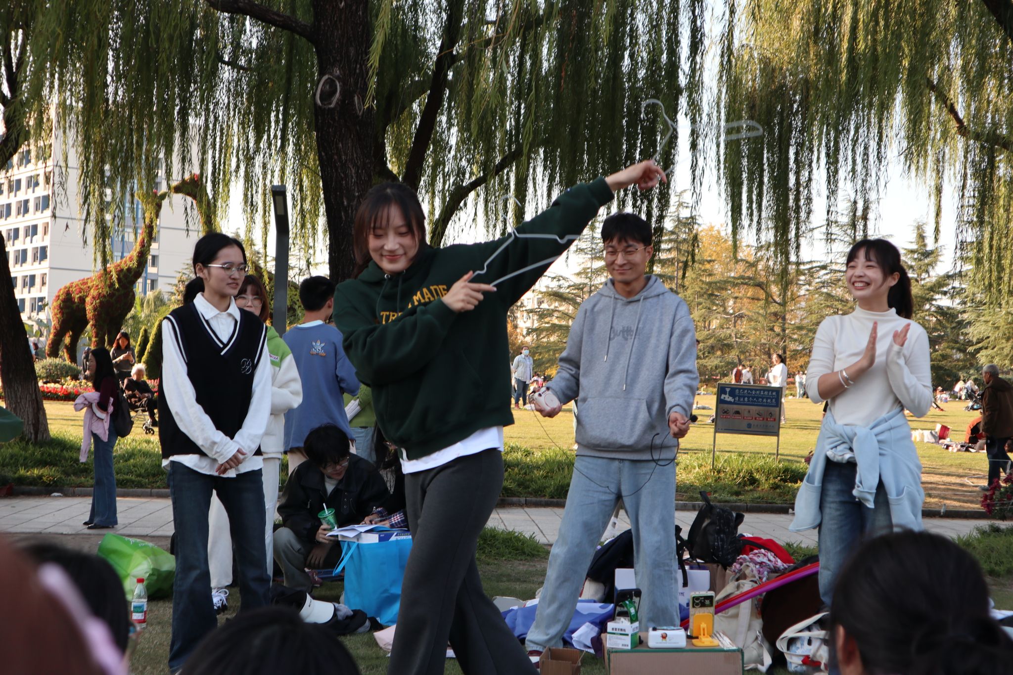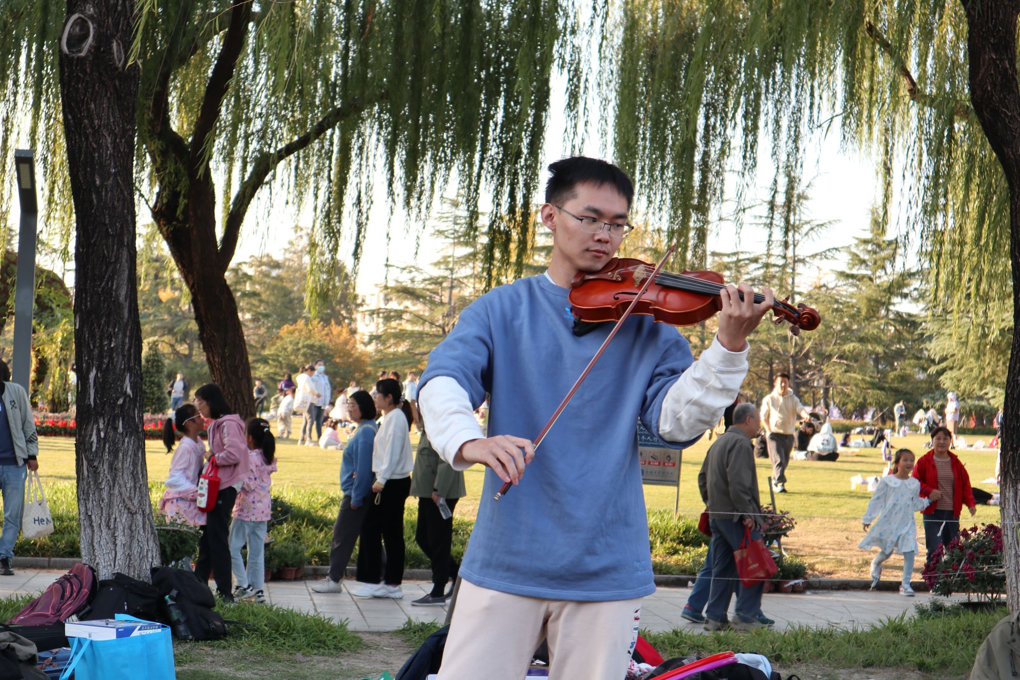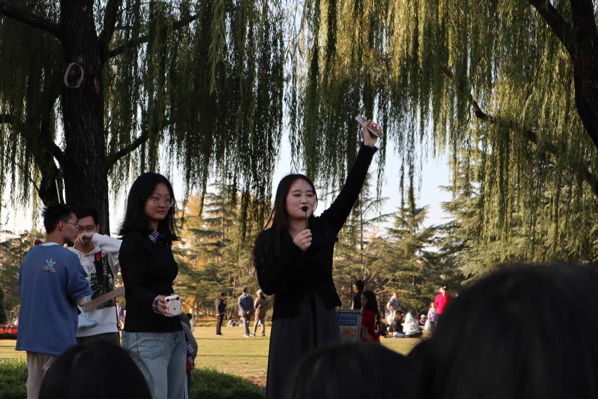 随后的才艺表演环节中,同学们纷纷登台,带来了歌曲、小品、小提琴演奏等多样节目,不仅展示了医学研究生的多才多艺,也为现场增添了轻松愉快的氛围,赢得了阵阵掌声与喝彩,吸引了不少菊花节游客驻足观看。